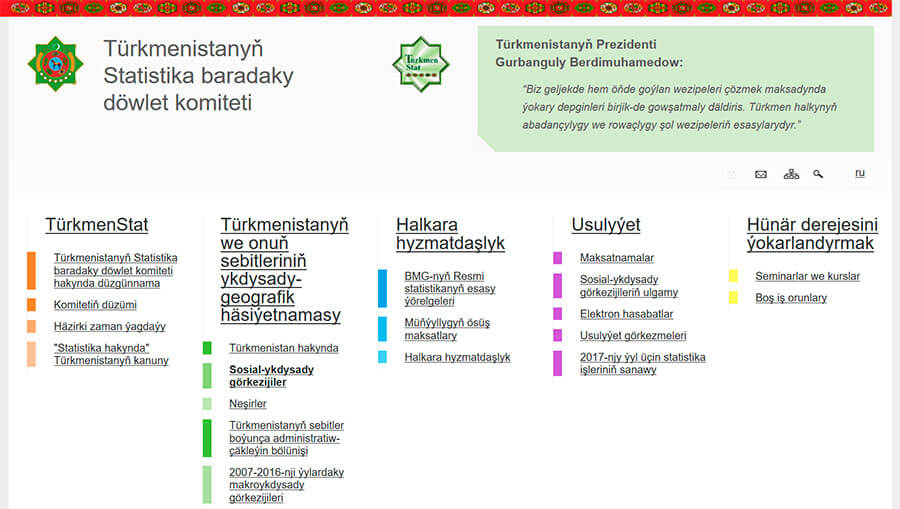 Gynansakda, Türkmenistanyň statistika baradaky döwlet komitetiniň saýty geçen asyrda döredilip taşlanana meňzeýär. Meselem, ýonekeý san – Türkmenistanyň ilat sany görkezilenok. 2012-nji ýylyň aýagynda Türkmenistanda ilat we ýaşaýyş jaý gorunyň uçdantutma ýazuwy geçirildi. Emma bu ýazuwyň netijeleri henizem näbelliligine galýar.
