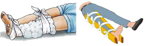 Şikeslenen aýagy sag aýaga döwlen ýerden aşakda we ýokarda daňmalydyr. Eger adamyny ýatyryp äkitme mümkin bolmasa, aýagyň iki bognuny tutýan seýik goýlup, esasy seýik, bogun eplenmez ýaly, aýagyň yz tarapyna goýulmalydyr. But süňki döwlende seýik bile çenli goýlup, oňa daňylýandyr.